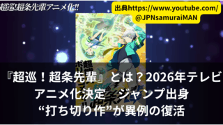 Anime 『超巡!超条先輩』とは?「次にくるマンガ大賞」で2年連続受賞作品が2026年テレビアニメ化決定 ジャンプ出身“打ち切り作”が異例の復活 『超巡!超条先輩』とは?「次にくるマンガ大賞」で2年連続受賞作品が2026年テレビアニメ化決定 ジャンプ出身“打ち切り作”が異例の復活🚨超緊急特報‼️『超巡!超条先輩』TVアニメ化決定‼️🚨超特大のお知らせ現着‼️💥『超巡!超条先輩』が20... 2025.10.13 Anime