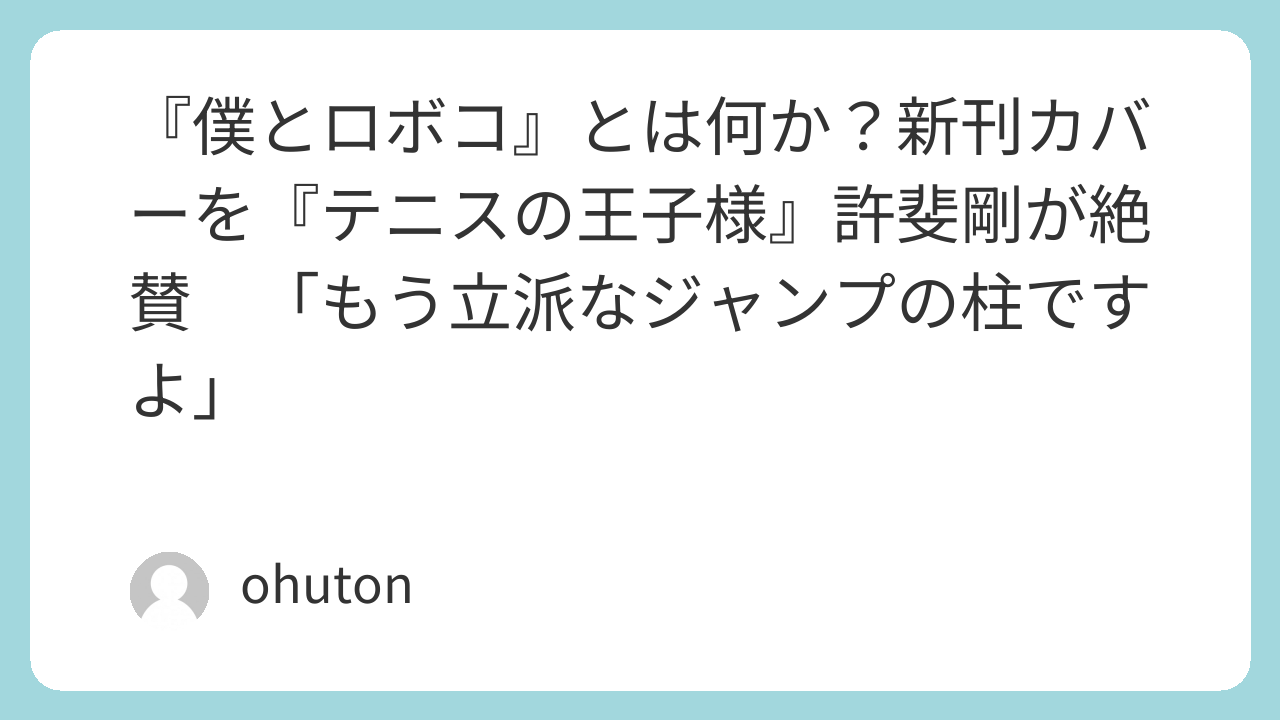 『僕とロボコ』とは何か?新刊カバーを『テニスの王子様』許斐剛が絶賛 「もう立派なジャンプの柱ですよ」 | o-yakeGAMES