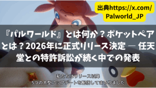 Games 『パルワールド』とは何か?ポケットペアとは?2026年に正式リリース決定 ― 任天堂との特許訴訟が続く中での発表 『パルワールド』とは何か?ポケットペアとは?2026年に正式リリース決定 ― 任天堂との特許訴訟が続く中での発表ポケットペアは、『パルワールド』の早期アクセス版を終了し、2026年に正式リリースとなるVer.1.0を配信することを発表しまし... 2025.09.21 Games