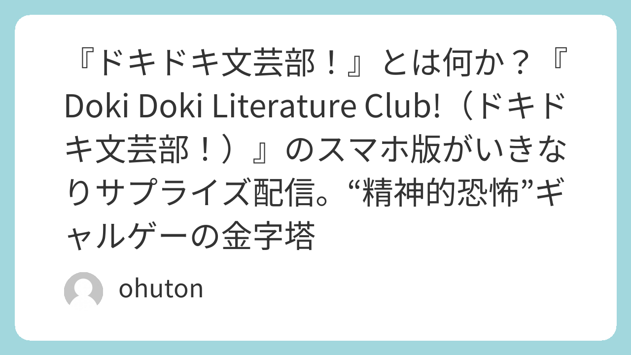 『Doki Doki Literature Club!(ドキドキ文芸部!)』のスマホ版がいきなりサプライズ配信https://t.co/oCigPZr8X7