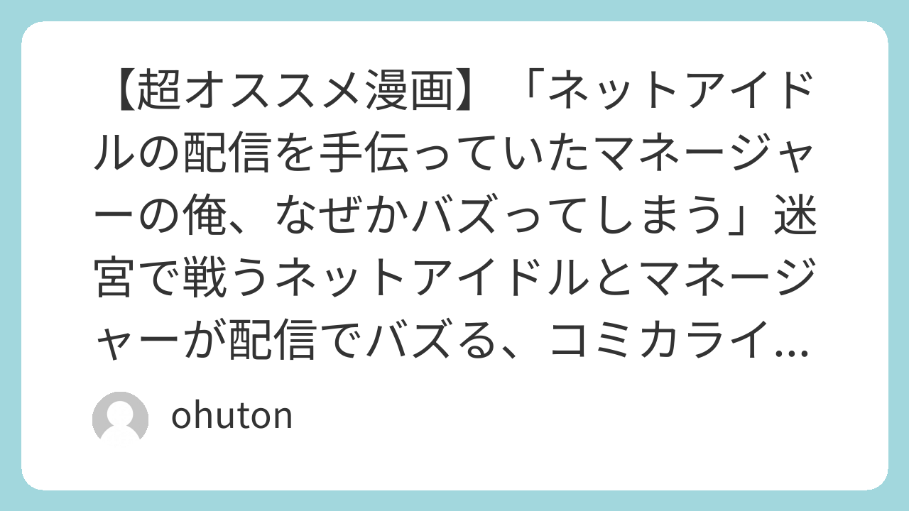 【超オススメ漫画】「ネットアイドルの配信を手伝っていたマネージャーの俺、なぜかバズってしまう」迷宮で戦うネットアイドルとマネージャーが配信でバズる、コミカライズ作品