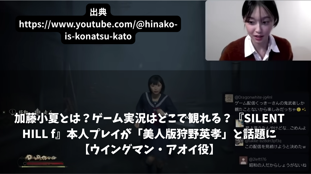 加藤小夏とは?ゲーム実況はどこで観れる?『SILENT HILL f』本人プレイが「美人版狩野英孝」と話題に【ウイングマン・アオイ役】