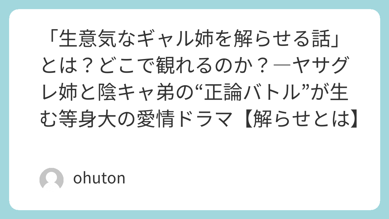 「生意気なギャル姉を解らせる話」とは?どこで観れるのか?―ヤサグレ姉と陰キャ弟の“正論バトル”が生む等身大の愛情ドラマ【解らせとは】